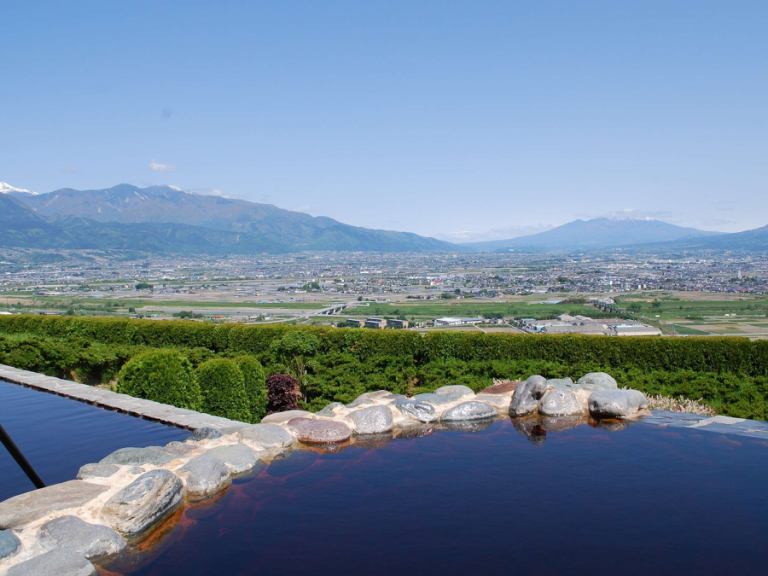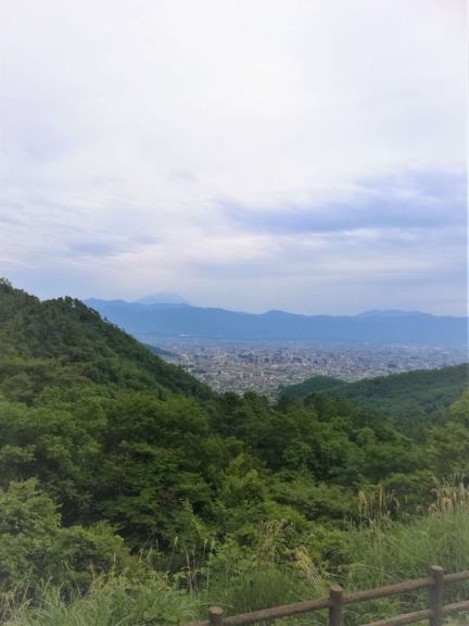 在升仙峡索道上,请欣赏甲府盆地的壮丽景色。